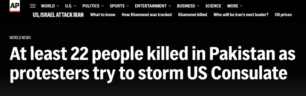 अमेरिका और इज़रायल की मिसाइलें ईरान में बरस रही हैं लेकिन आग पाकिस्तान की राजधानी इस्लामाबाद में लगी है| मिसाइलें इज़रायल के हायफा, जेरुसलेम, बेत सेमेश में तबाही मचा रही हैं लेकिन कोहराम पाकिस्तान के कराची में मचा हुआ है| सउदी अरब की रास तनुरा रिफायनरी में धमाके के बाद आग लगी हुई है लेकिन बवाल लाहौर में हो रहा है| कुवैत, बहरीन, UAE में अंगारे बरस रहे हैं लेकिन हाहाकार, गिलगित, क्वेटा, पेशावर में मचा हुआ है| अमेरिका और इज़रायल ने मिल कर पूरा मिडिल ईस्ट सुलगा दिया है। ईरान पर हमले की आग साउदी अरब, यूएई, बहरीन, क़तर, लेबनान, इराक समेत और भी कई देशों तक फैल चुकी है लेकिन गजब की बात देखिये कि इस जंग को लेकर पाकिस्तान के अंदर ही एक जंग शुरू हो गई है और इस जंग में अब तक 20 से ज़्यादा लोग मारे जा चुके हैं…..ये जंग है पाकिस्तान की सरकार और पाकिस्तान की पब्लिक के बीच। ईरान के सुप्रीम लीडर और शिया समुदाय के सबसे बड़े नेता अयातोल्ला अली खामनेई के मिसाइल स्ट्राइक में मारे जाने की ख़बर ने पाकिस्तान में हंगामा खड़ा कर दिया। शहर-शहर लोग खामनेई की हत्या के खिलाफ सड़कों पर उतर आए। कराची में लोगों की भीड़ अमेरिकी काउंसुलेट के बाहर जमा हो गई। पथराव करने लगी। तोड़फोड़ करने लगी….भीड़ ने काउंसुलेट के बाहरी हिस्से में जमकर तबाही मचाई।
